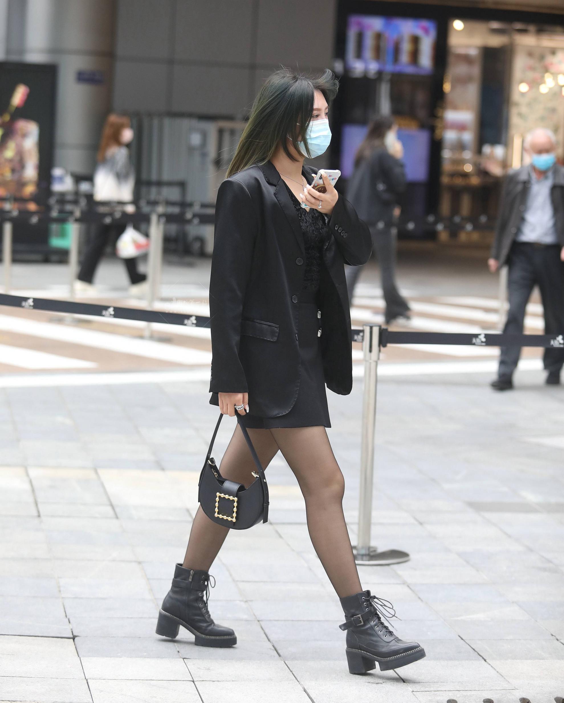 街拍丝袜和靴子一起来