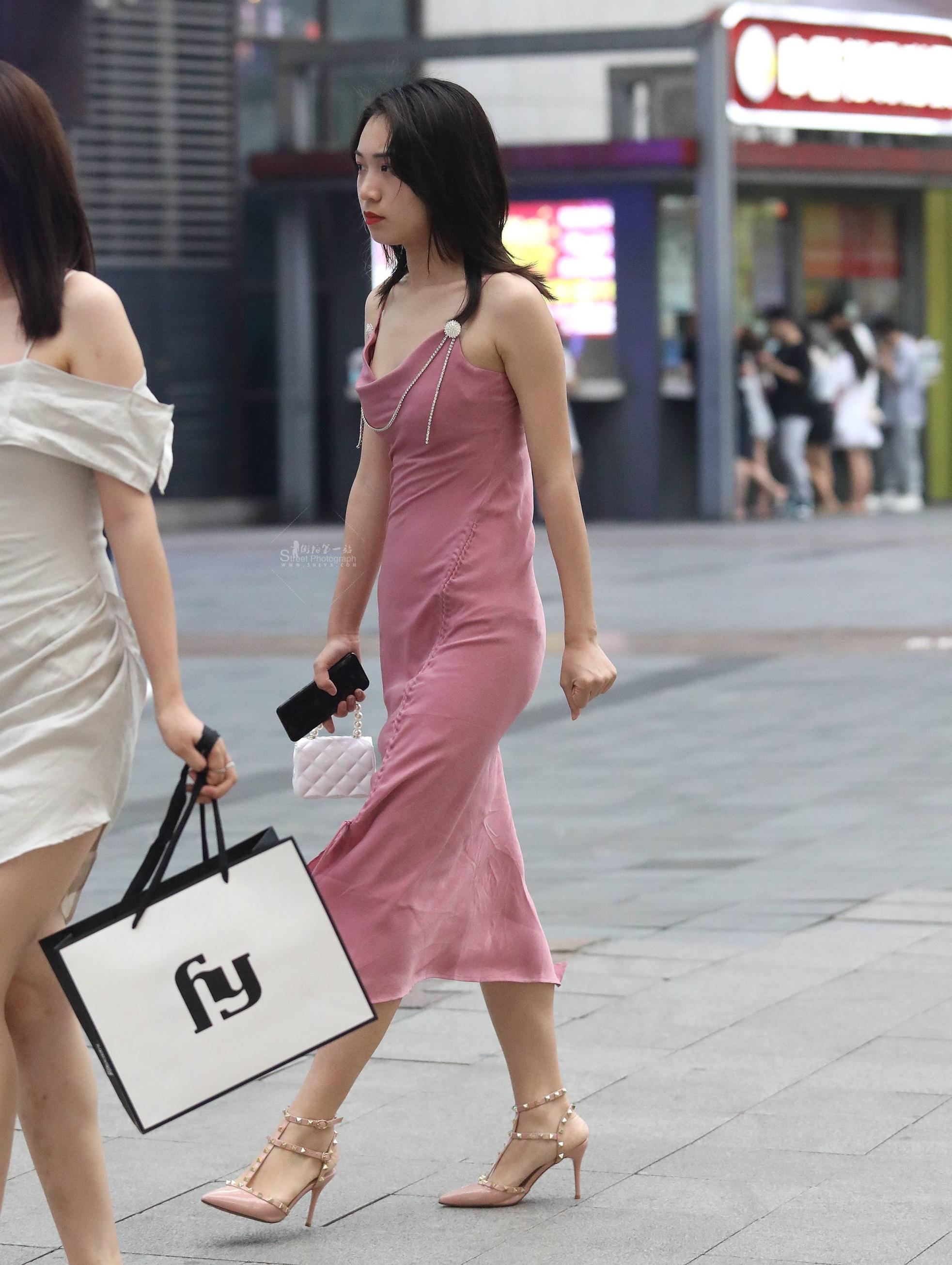 吊带街拍高跟妹子