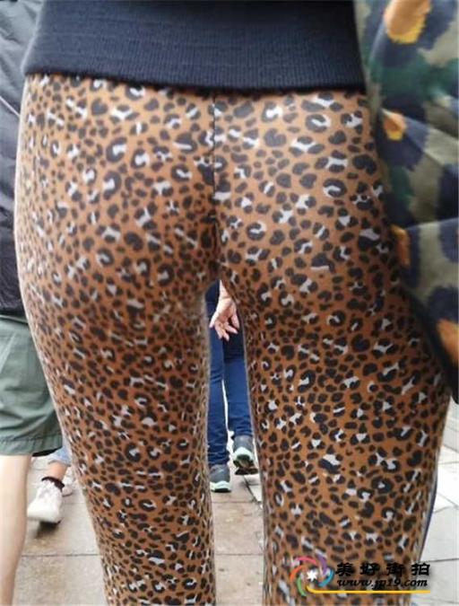 街拍豹纹紧身打底裤金发洋妞细腿圆臀[MP4/920M] ...