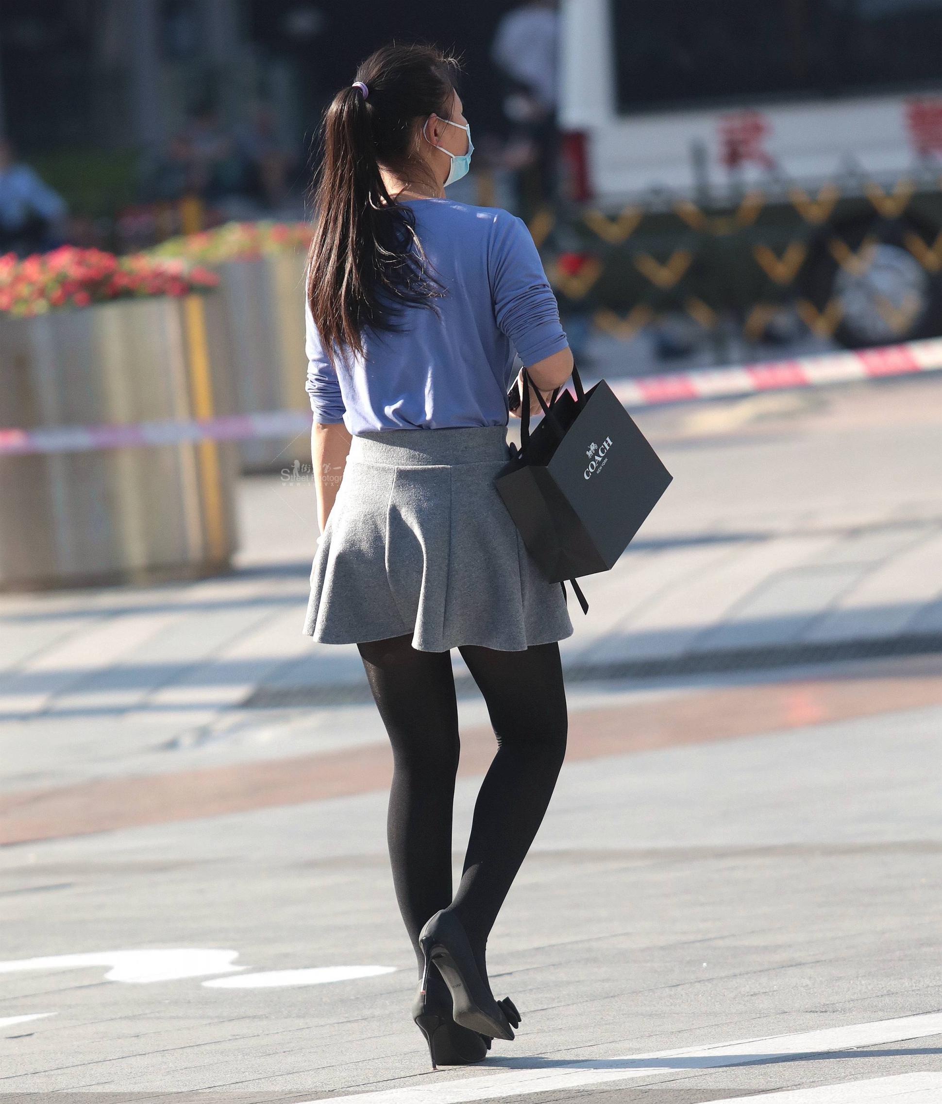 诱惑丝袜街拍高跟