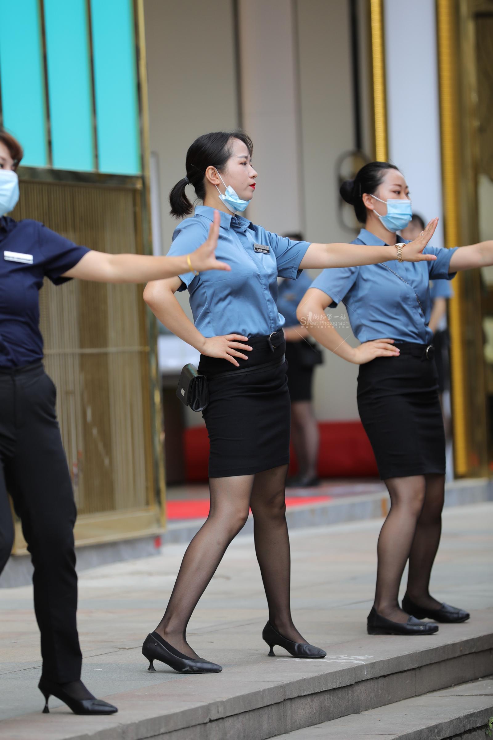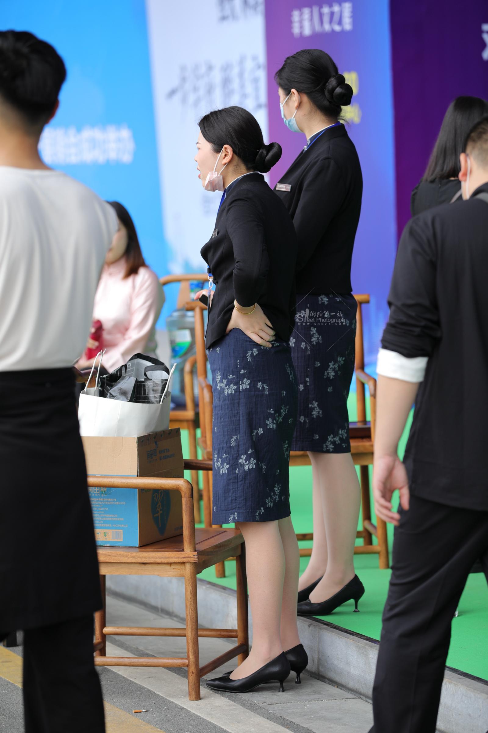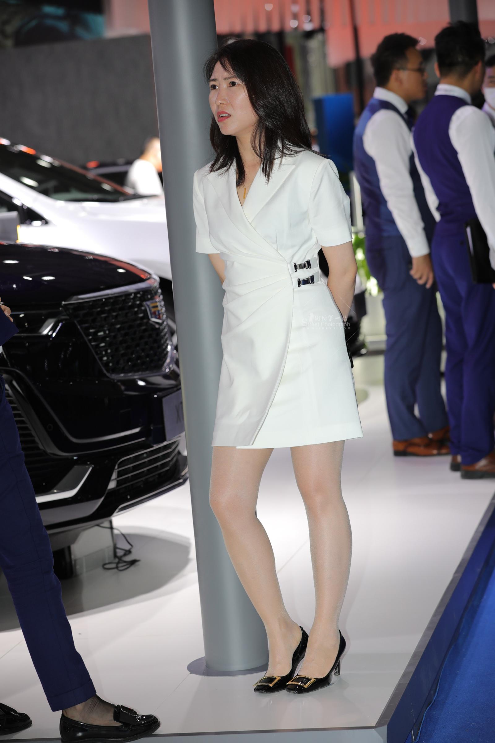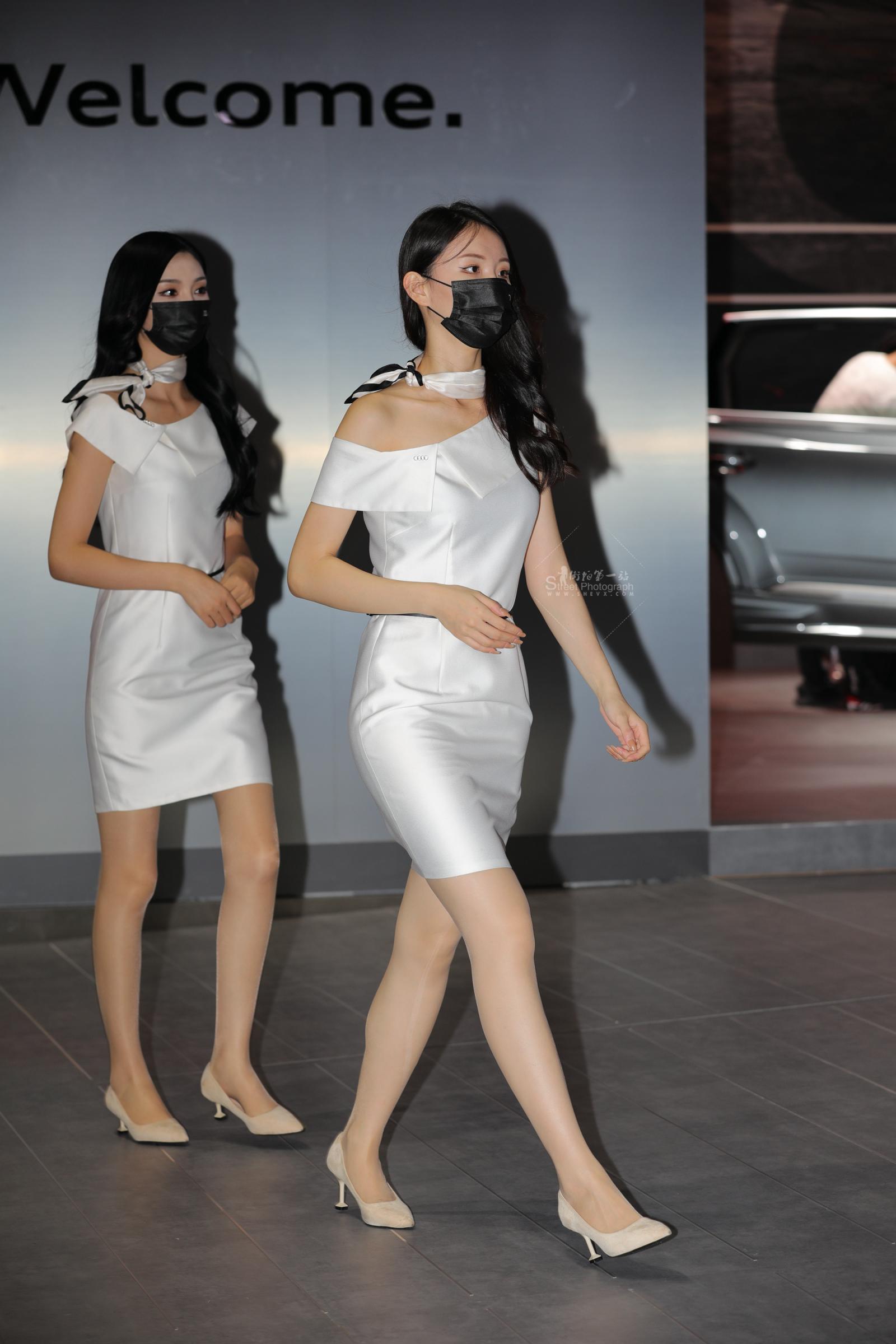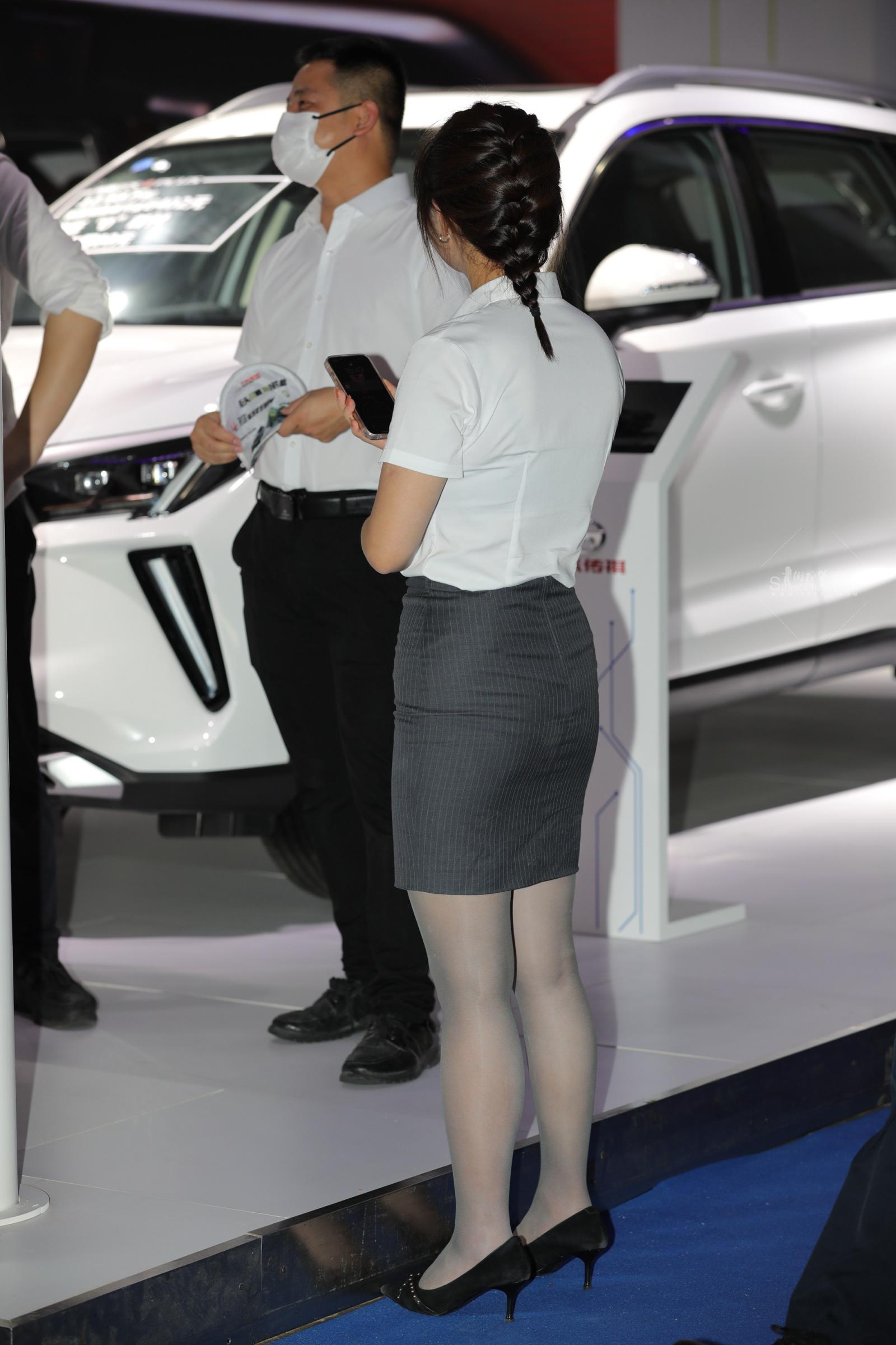 汽车销shou街拍灰丝高跟制服
