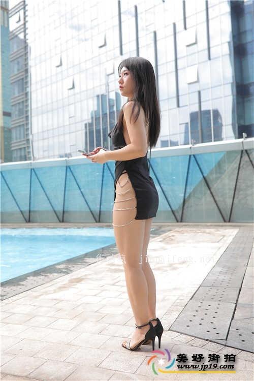 [魔Buy视频] 街拍黑色紧身连衣包臀超短裙美腿丝袜高跟美女[MP4/3.22G] 3...
