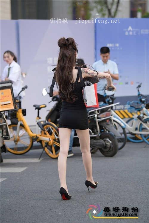 [魔Buy视频] 街拍黑色紧身连衣包臀超短裙美腿丝袜高跟美女[MP4/3.22G] 2...