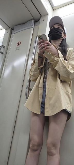 【独家原创】 青春靓丽女大,小白裙里的牛仔裤也得看看欣赏