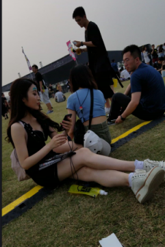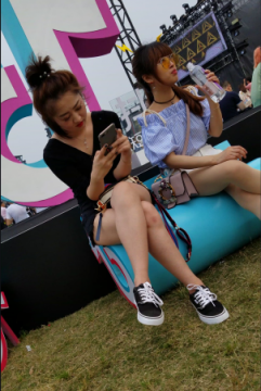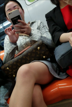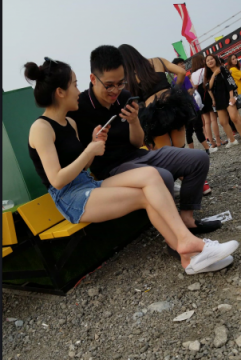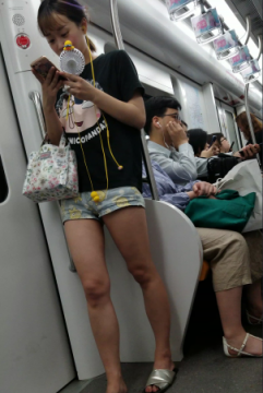 玩手机的黑衣热裤