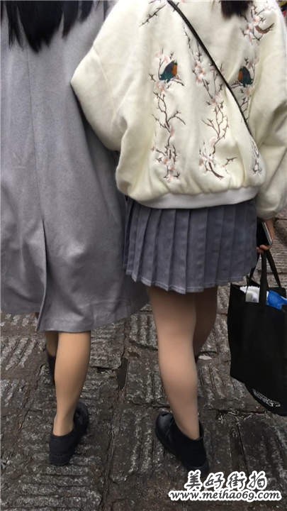 街拍灰色超短裙肉色丝袜黑色打底裤长腿妹子[MOV/208M]