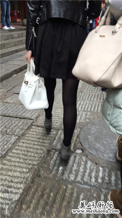 街拍黑色公主短裙黑色丝袜极品纤细美腿长发妹子[MOV/154M]