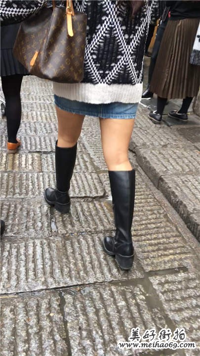 街拍蓝色牛仔包臀裙黑色高靴裸腿妹子[MOV/206M]...