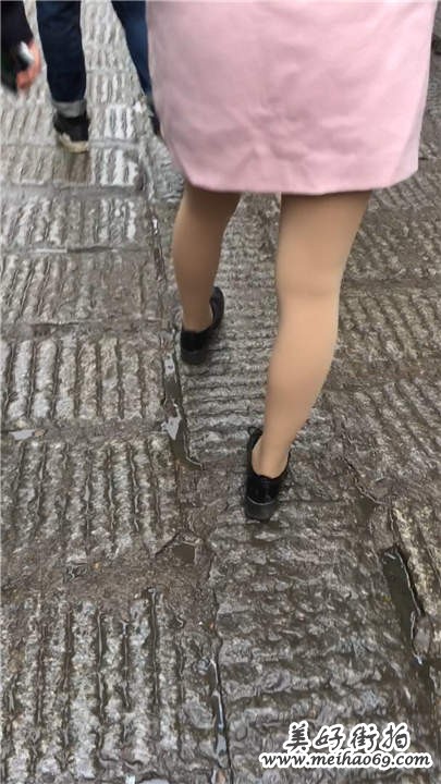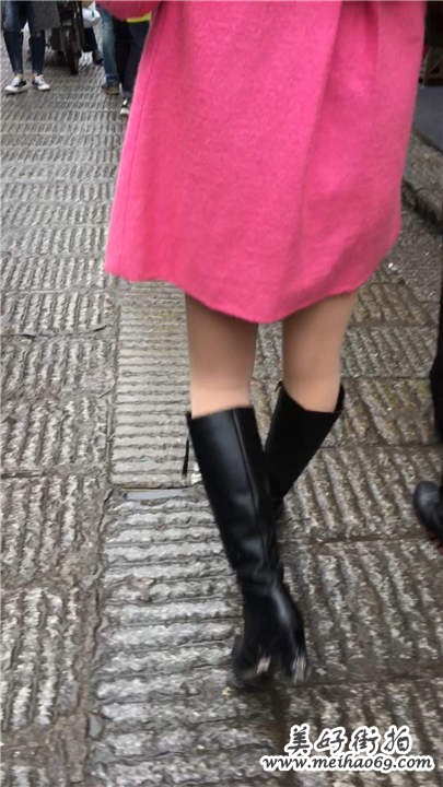街拍粉衣黑色高跟高筒皮鞋肉色丝袜美腿美眉[MOV/205M