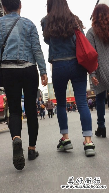 街拍肉色丝袜中裙妹子和蓝色紧绷牛仔裤妹子逛街[MOV/208M]