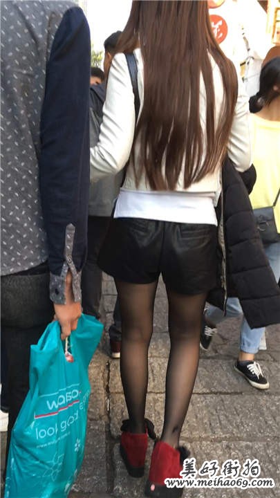 街拍黑色皮短裤黑色丝袜性感美腿长发少妇[MOV/247M]