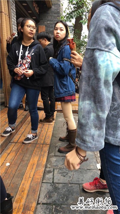 排队买小吃的格子超短裙长发肉色打底裤学生美眉[MOV/202M]