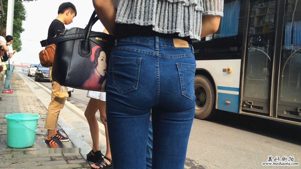 超紧牛仔苹果大宽臀美女在等车[512M/AVI]