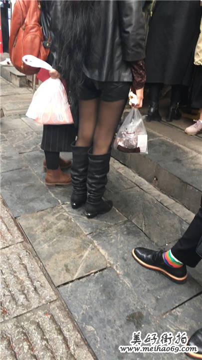 排队买小吃的黑色皮短裤黑色丝袜美腿长发妹子[MOV/154M]