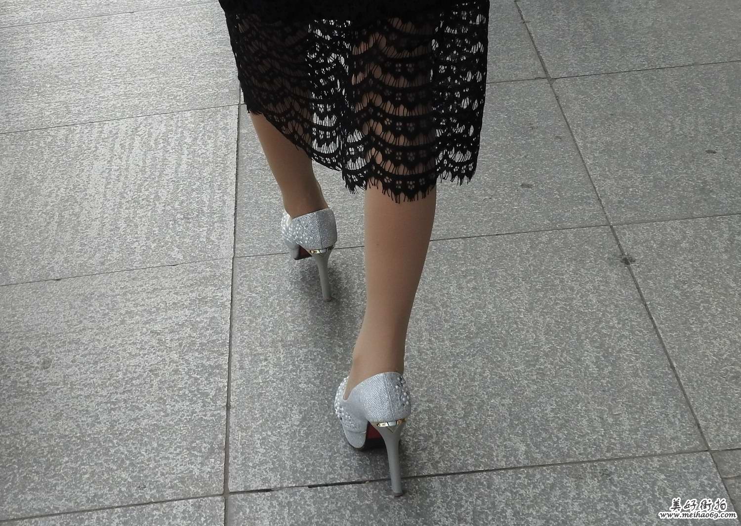 街拍黑色蕾丝连衣裙白色恨天高鞋肉丝美腿少妇[MP4/225M]