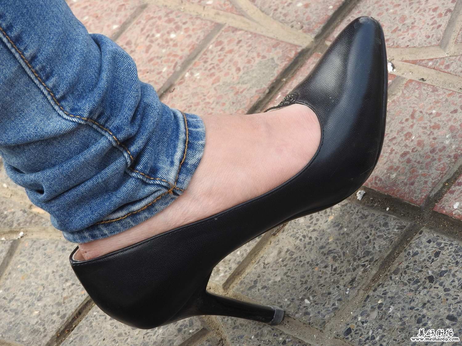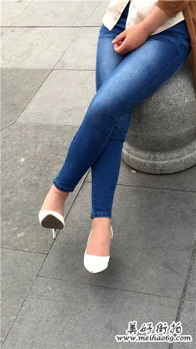 街拍蓝色紧身牛仔裤黑色高跟白嫩裸足少妇[MP4/262M]