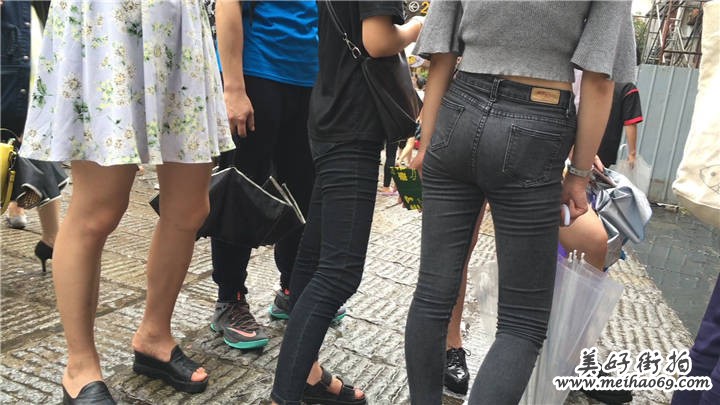 街拍灰黑紧绷牛仔裤漂亮美女极品饱满圆润翘臀[MOV/386M]