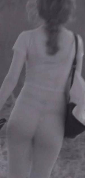 【独家原创】漂亮女子的超短牛仔裤挤出了臀部肉肉