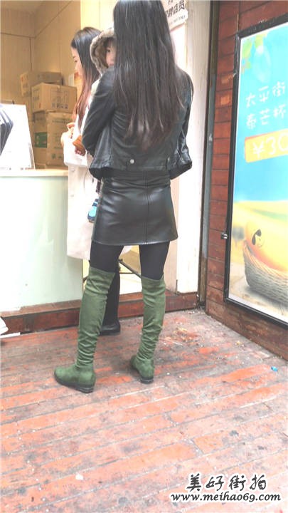 街拍黑色皮短裙打底丝袜高靴长发美少妇[MOV/231M]