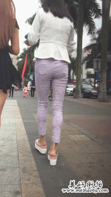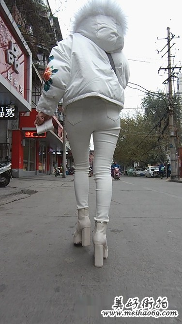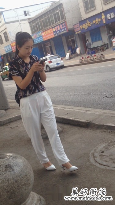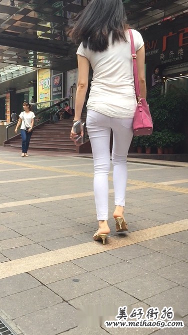 街拍细高跟白色微透休闲裤小美女[704M/MOV]