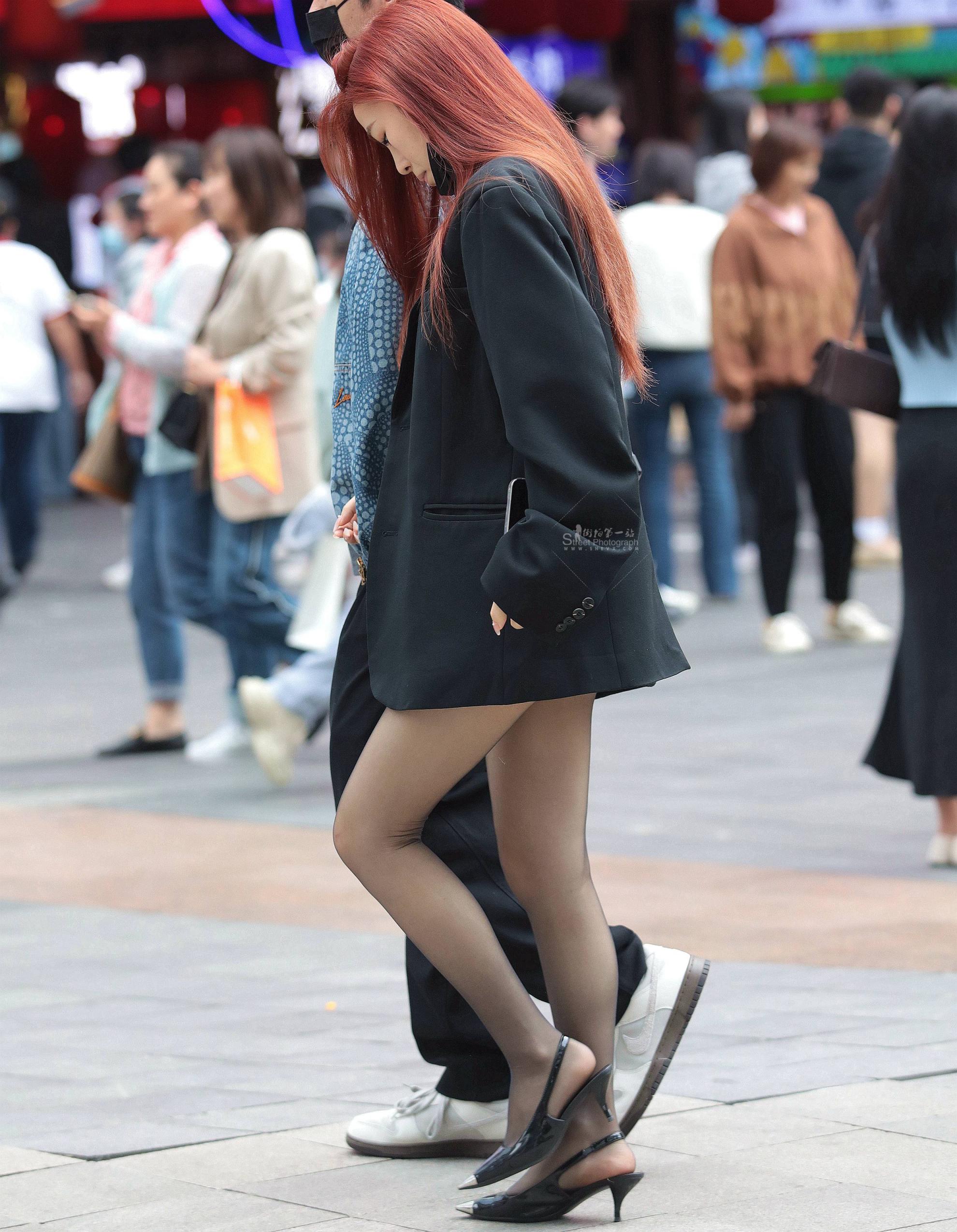 诱惑肉丝街拍高跟shaofu