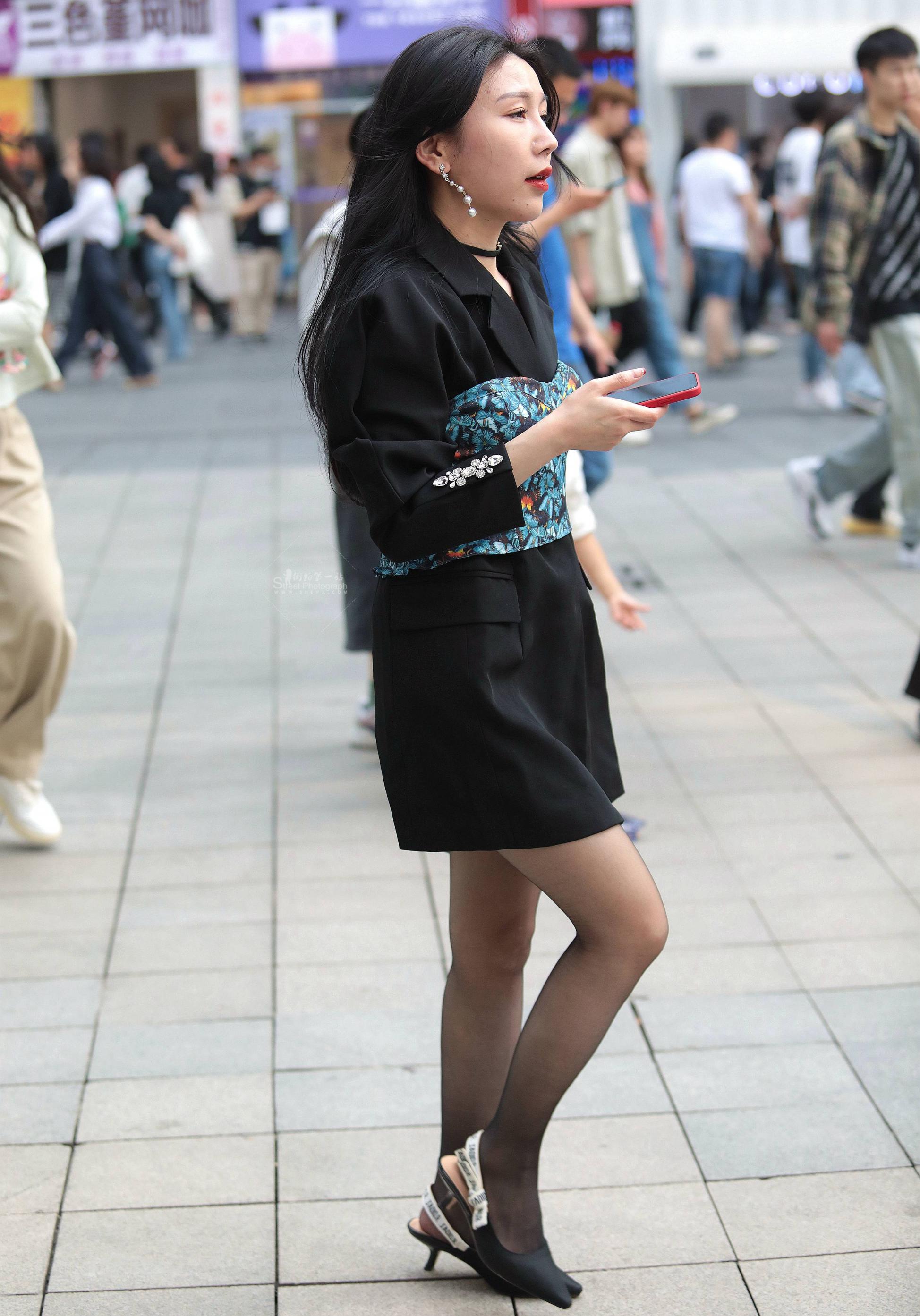 气质黑裙街拍高跟shaofu