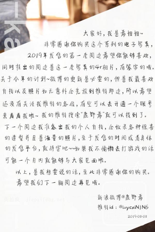 [套图名称]:鹿野希–土曜日の彼女[出境模特]: 鹿野希[套图尺寸]:4096x2730[套图大小]:97P/88.4M[下载方式]:百度...