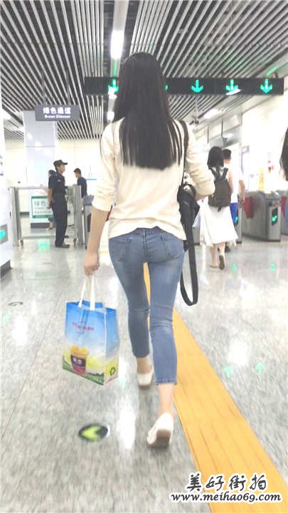 地铁站自动扶梯上蓝色牛仔裤美眉性感圆润翘臀[MOV/196M]