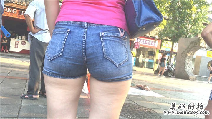 街拍蓝色紧绷牛仔短裤极品圆润饱满翘臀少妇[MOV/526M]