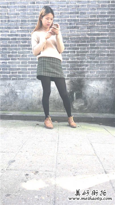 街拍等人的格子短裙黑色打底丝袜美腿长发美眉[MOV/170M]...