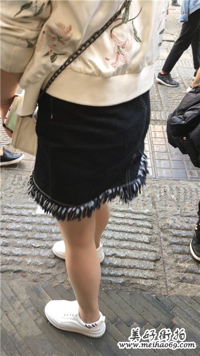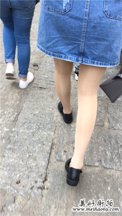 街拍黑色牛仔包臀裙肉色丝袜直腿学生妹子[MOV/188M]