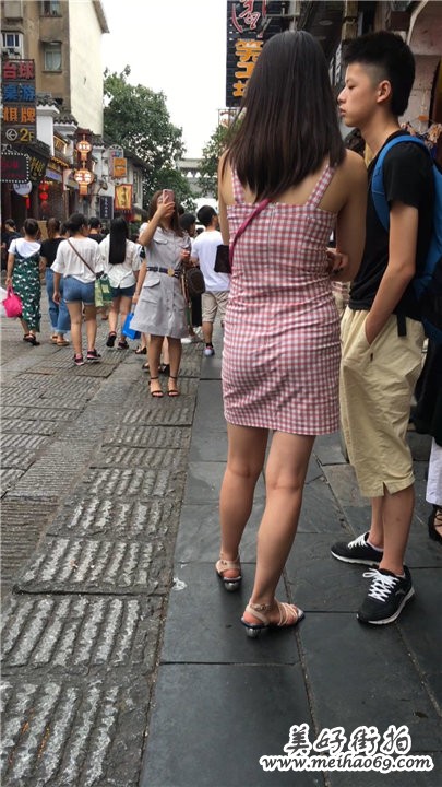 粉色格子连衣包臀短裙妹子白腿宽臀[MOV/342M]
