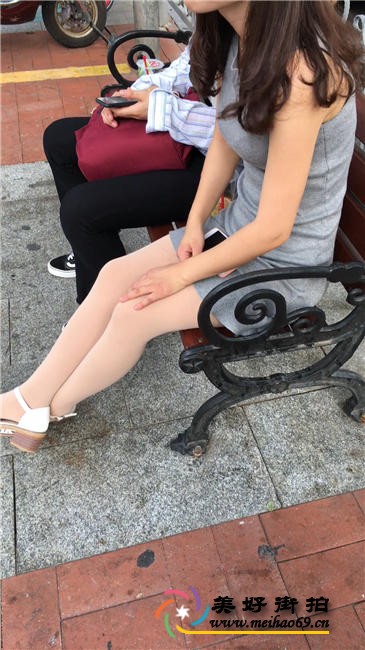 长椅休息的灰色连衣包臀短裙肉色丝袜性感美女[MOV/395M]