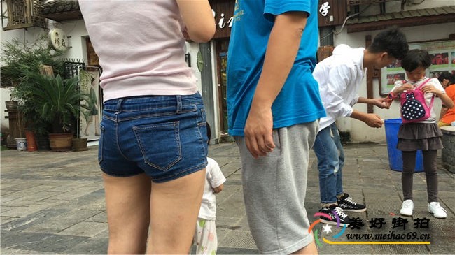 街拍蓝色紧身牛仔短裤性感白腿小少妇[MOV/314M]