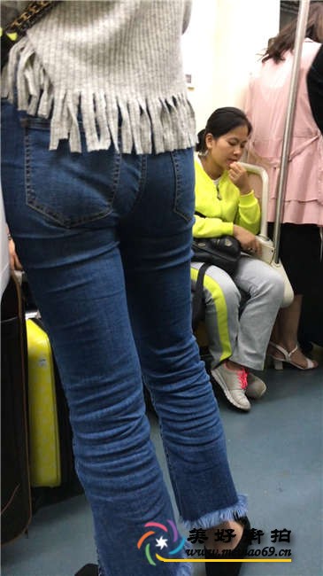 地铁蓝色紧身牛仔喇叭裤美眉性感圆臀显内痕[MOV/532M] ...