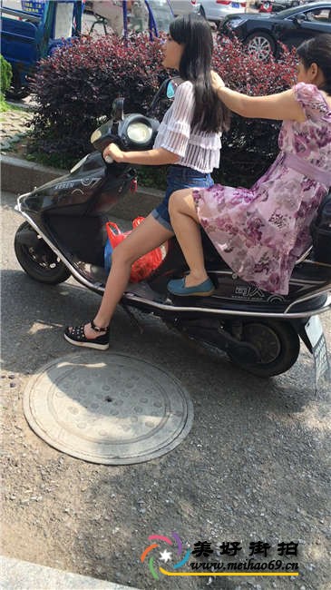 公交站等车的黑色紧裤和蓝色牛仔短裤两个美眉[MP4/158M]