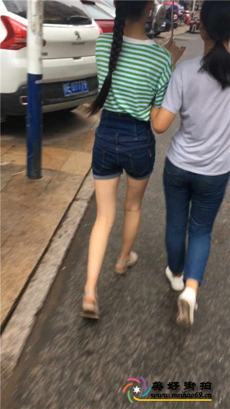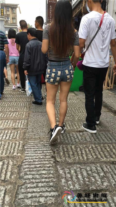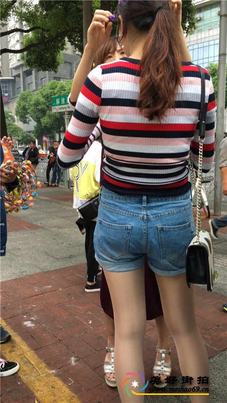 街拍蓝色牛仔短裤肉色亮丝美眉性感长腿[MP4/279M]