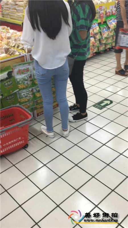 超市超美的淡蓝色牛仔裤长腿帆布鞋美眉[MP4/190M]...