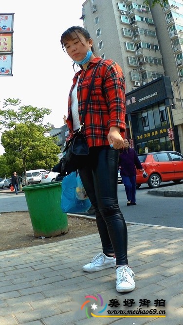 黑色紧身皮裤翘臀美眉在等车[MP4/619M]