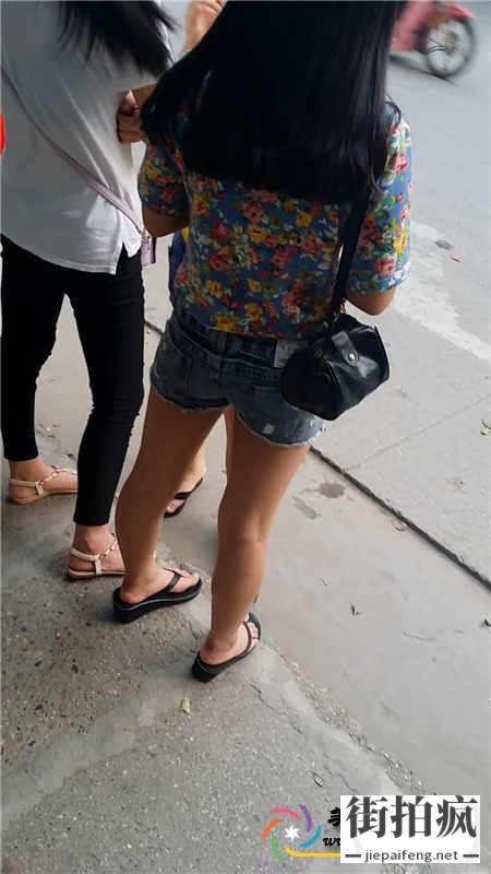 街拍等车的两个牛仔热裤美眉圆翘臀[MP4/407M]