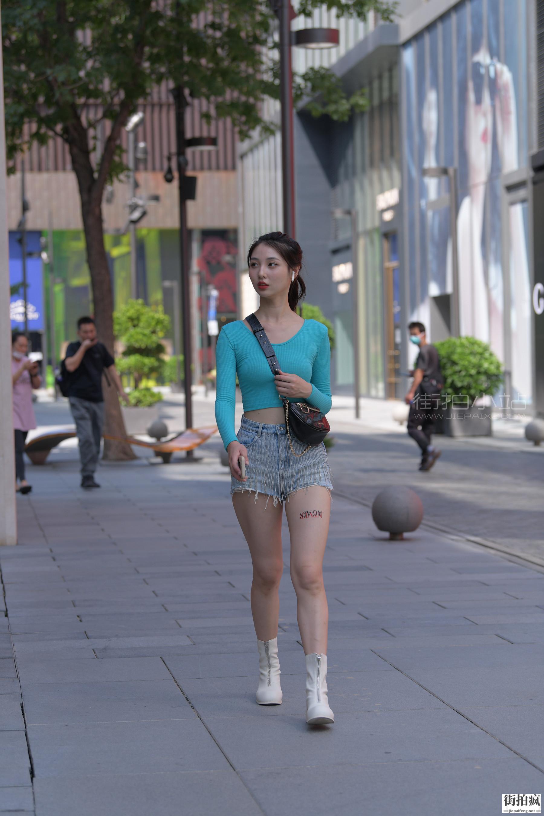 街拍蓝色牛仔短裤美眉圆臀[MP4/120M]