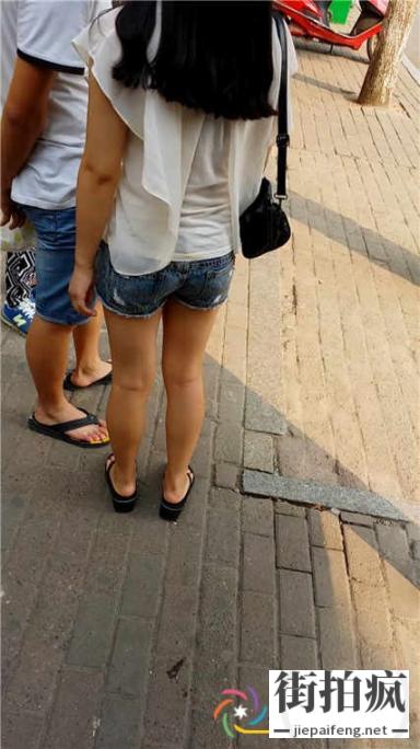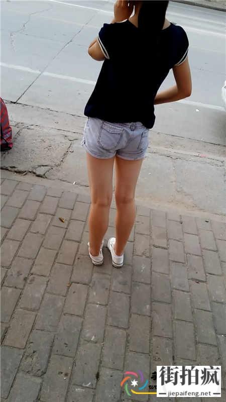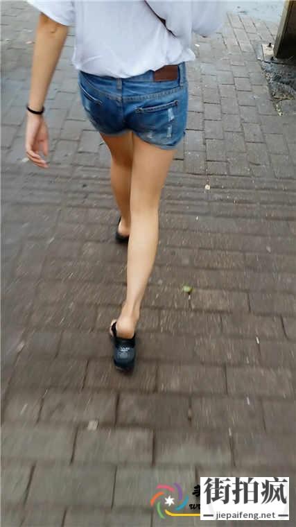 街拍臀型挺翘的牛仔热裤妹子[MP4/208M]
