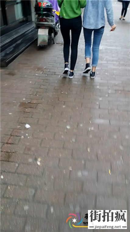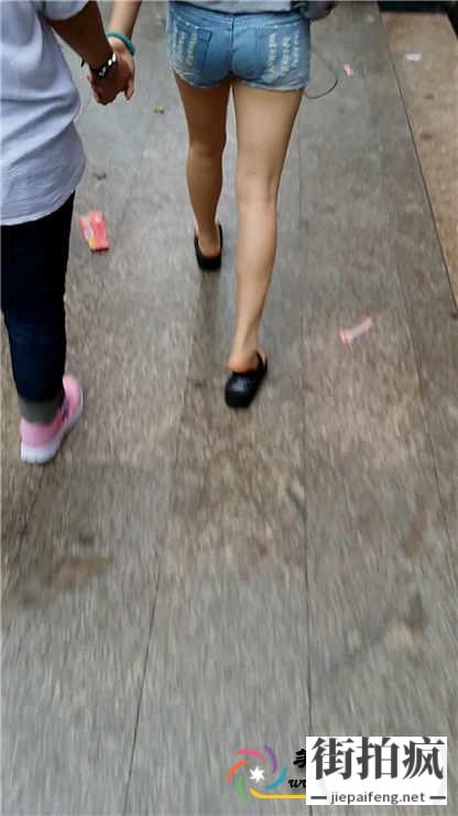 街拍蓝色紧身牛仔裤和蓝色休闲短裤两个美眉[MP4/138M]
