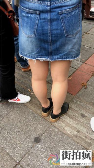 街拍蓝色宽松牛仔短裙肉丝极品美腿妹子[MOV/137M]...