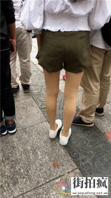 街拍绿色休闲短裤肉色丝袜极品长腿翘臀美眉[MOV/201M]...