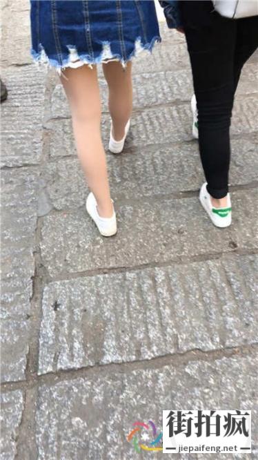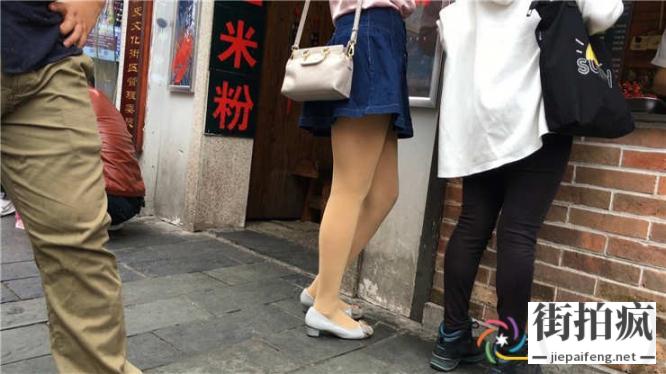 逛街的蓝色牛仔短裙肉色丝袜细腿学生美眉[MOV/122M]