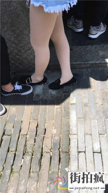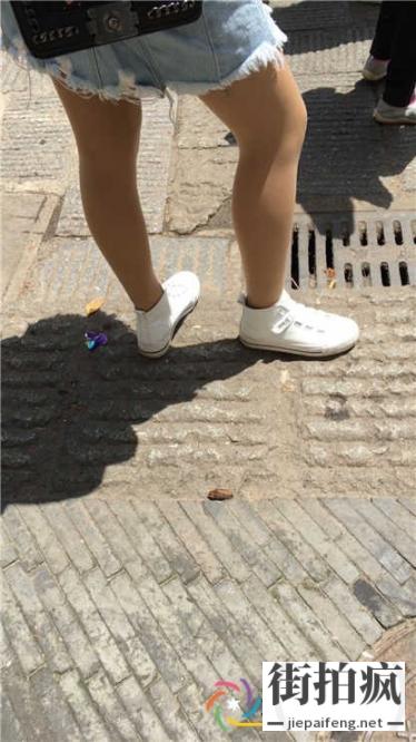 街拍蓝色牛仔热裤尖角凉鞋肉丝学生MM[MOV/1.05G]