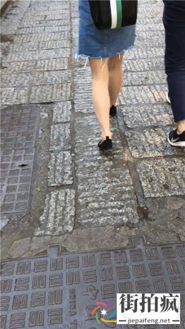 街拍蓝色牛仔短裙黑色丝袜细腿美眉[MOV/147M]