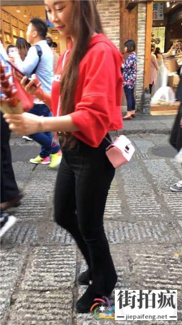 街拍黑色紧绷喇叭裤漂亮妹子极品美腿圆润翘臀[MOV/841M]
