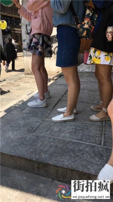 街拍牛仔包臀短裙肉丝白鞋美眉性感美腿翘臀[MOV/160M]...